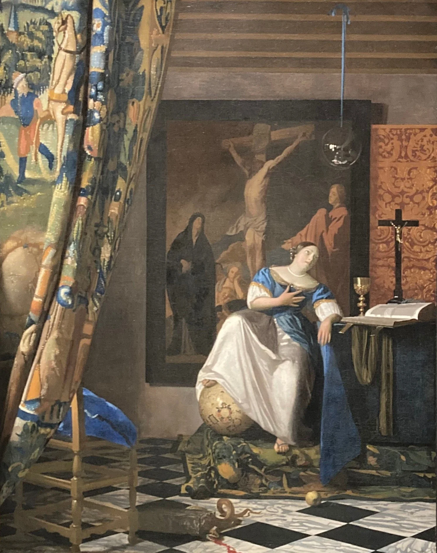 Standing before Allegory of the Catholic Faith was unlike looking at any reproduction or photograph. The canvas held a gravity that no screen or page could convey. A curtain pulled aside, a woman seated upon a globe, a glass sphere suspended from the ceiling, the whole composition felt both staged and alive, as if I had stepped into a theatre where faith itself was being performed.